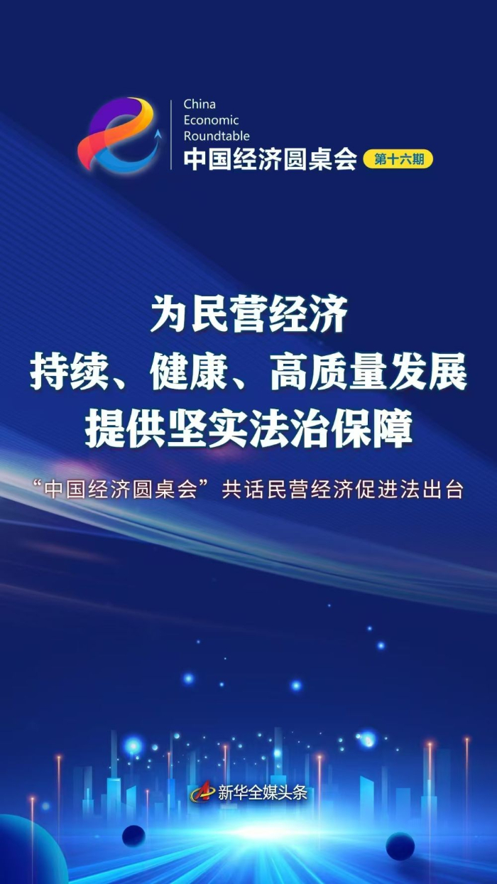 4月30日,新华社推出第十六期“中国经济圆桌会”大型全媒体访谈节目,邀请全国人大常委会法工委经济法室主任杨合庆,国家发展改革委民营经济发展局副局长刘民,全国工商联副主席、奇安信科技集团董事长齐向东三位嘉宾,共话民营经济促进法出台。