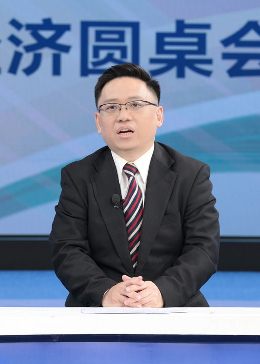 国家移民管理局外国人管理司副司长柳佳在第十七期“中国经济圆桌会”大型全媒体访谈节目录制现场发言。新华社记者 李贺 摄
