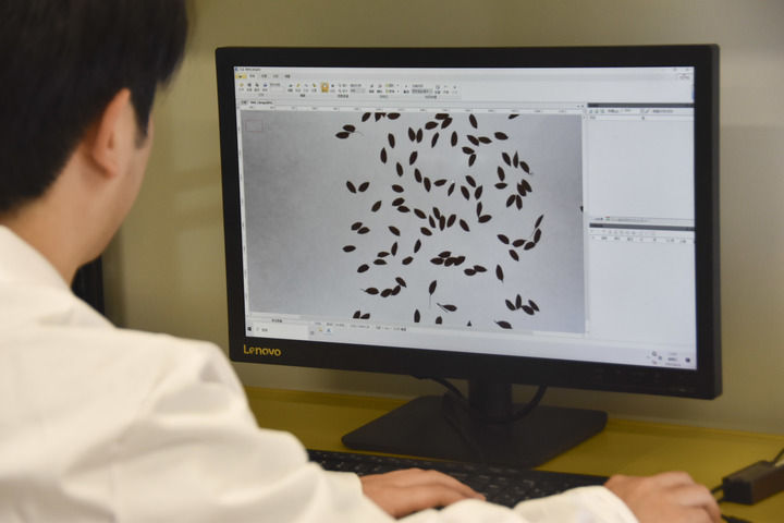 2025年4月25日,在湖南长沙,岳麓山实验室的研究人员在进行种子表型分析。新华社记者 白田田 摄