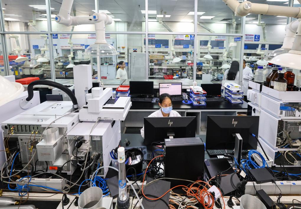 技术人员在新宝股份认证测试中心进行理化测试(7月24日摄)。
