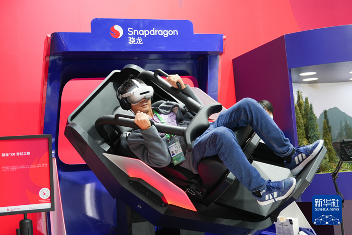 11月6日,参观者在第八届进博会技术装备展区高通展台体验XR设备。 新华社记者 张子彧 摄
