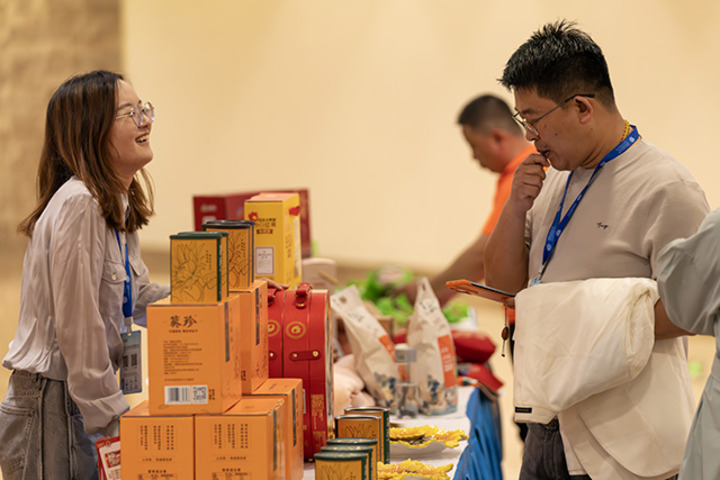 12月3日,在2025企业家博鳌论坛国民共“拾”光市集,参会嘉宾正在品尝国产食品。新华网记者 钟奕摄