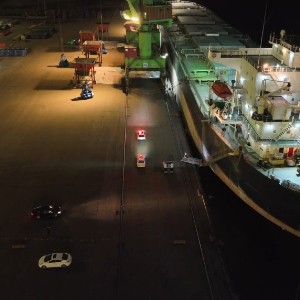22日晚,装载着1.8万余吨进口钾肥的马绍尔群岛籍“安吉丽娜”轮靠泊天津港汇盛码头。