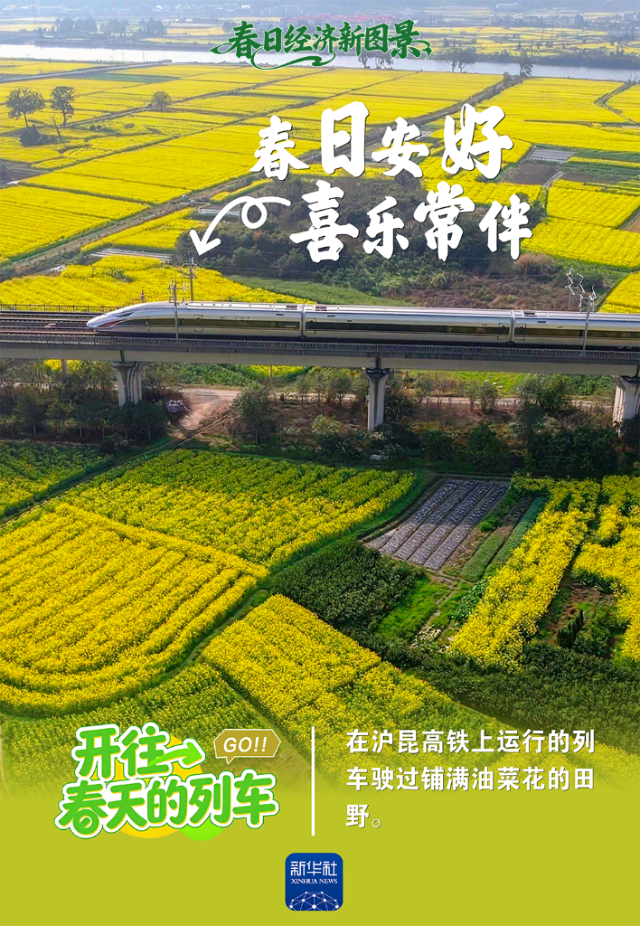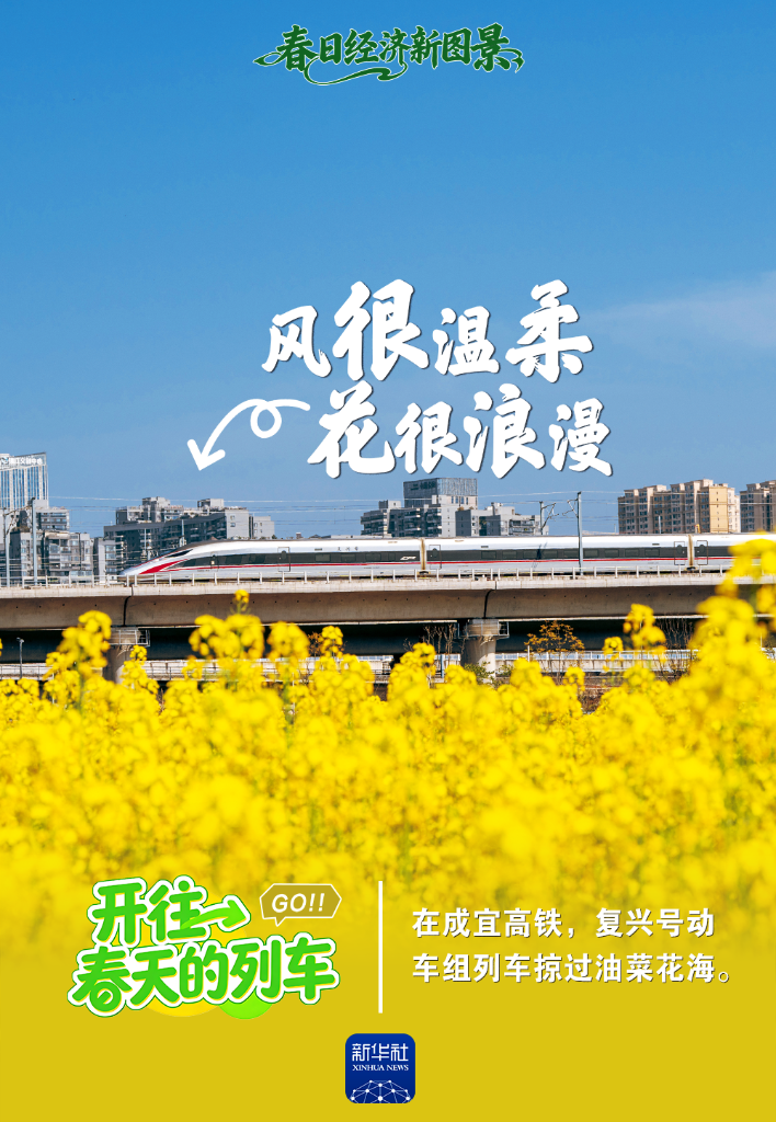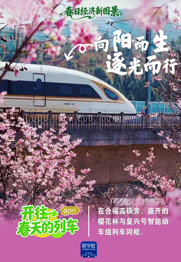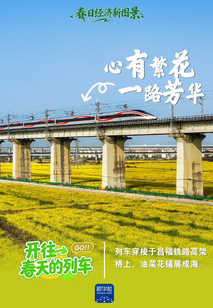 从武夷山的樱花茶园,到居庸关的花海长城;从沪昆沿线的梅花竞放,到川渝黔遍野的油菜花海……一趟趟“赏花专列”穿越春光,将春天的“颜值”精准送达游客心间;一次次拥抱花海的奔赴,照见“赏花经济”的蓬勃活力。跟随海报,一起搭乘“开往春天的列车”,遇见一路芳华、尽览春日如画。