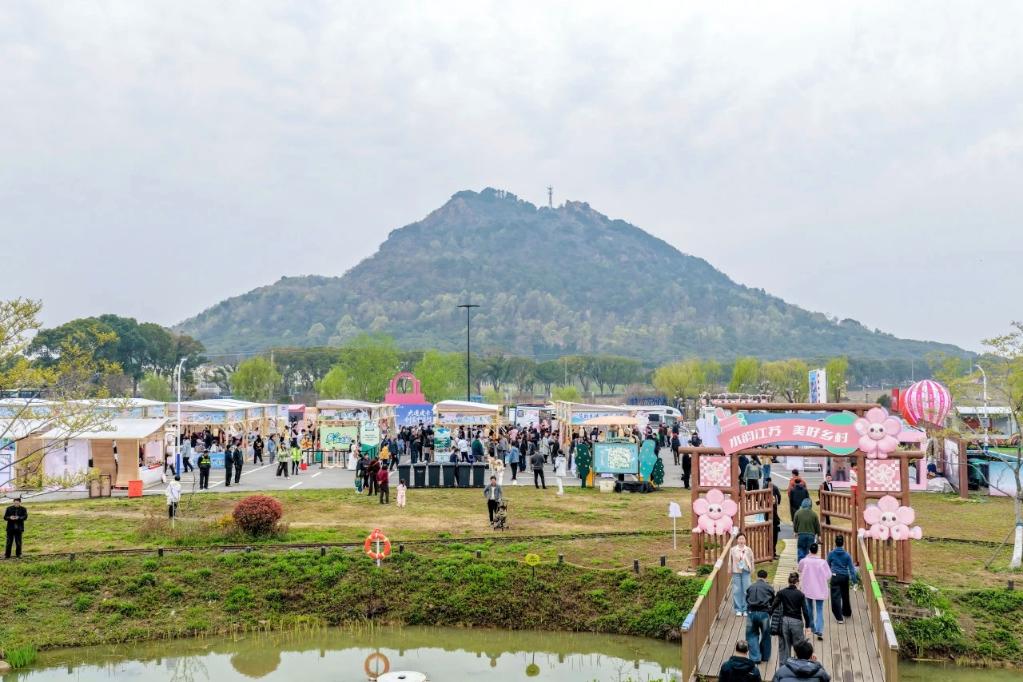图为在阳山镇桃心小岛举行的春日市集场景。新华社发