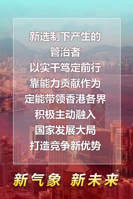 “惟希望也,故進取;惟進取也,故日新。”我們相信,新選制下產生的管治者,必將以實干篤定前行,靠能力貢獻作為,定能帶領香港各界積極主動融入國家發展大局,打造競爭新優勢。我們堅信,有偉大祖國作堅強后盾,有14億多中國人民全力支持,全體香港同胞團結一致、不懈奮斗,“一國兩制”在港實踐必將煥發新的生機和活力,香港定能再創新猷,大有可為!