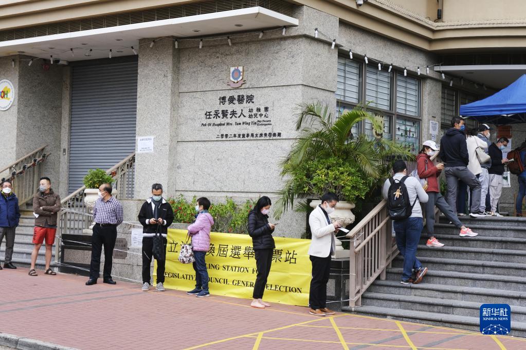 在位于香港黃埔的投票站,選民在排隊準(zhǔn)備投票(12月19日攝)。新華社記者 王申 攝