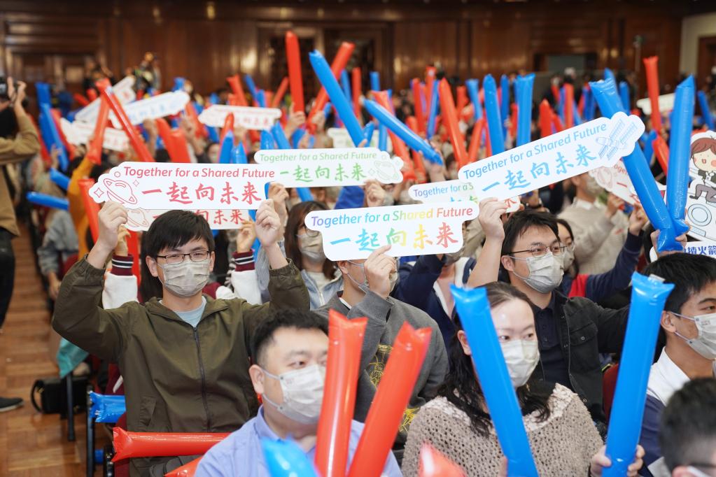 在香港大學(xué)拍攝的“元旦京港澳天宮對話”活動香港分會場。新華社記者 王申 攝