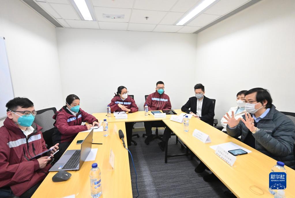 2月20日,內地專家組在特區政府衛生署代表陪同下到訪檢疫中心工作小組,了解特區政府在檢疫隔離方面的工作。新華社發