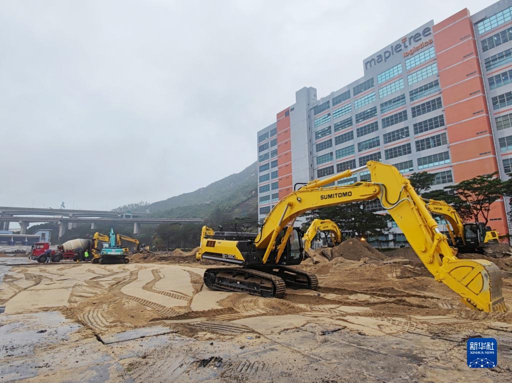 2月22日拍攝的香港洪水橋臨時性社區隔離治療設施建設現場。新華社發