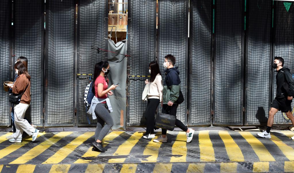 3月1日,在香港中環,市民佩戴口罩出行。新華社記者 盧炳輝 攝