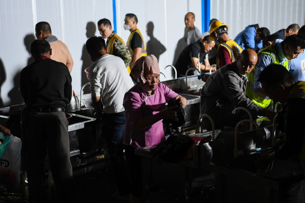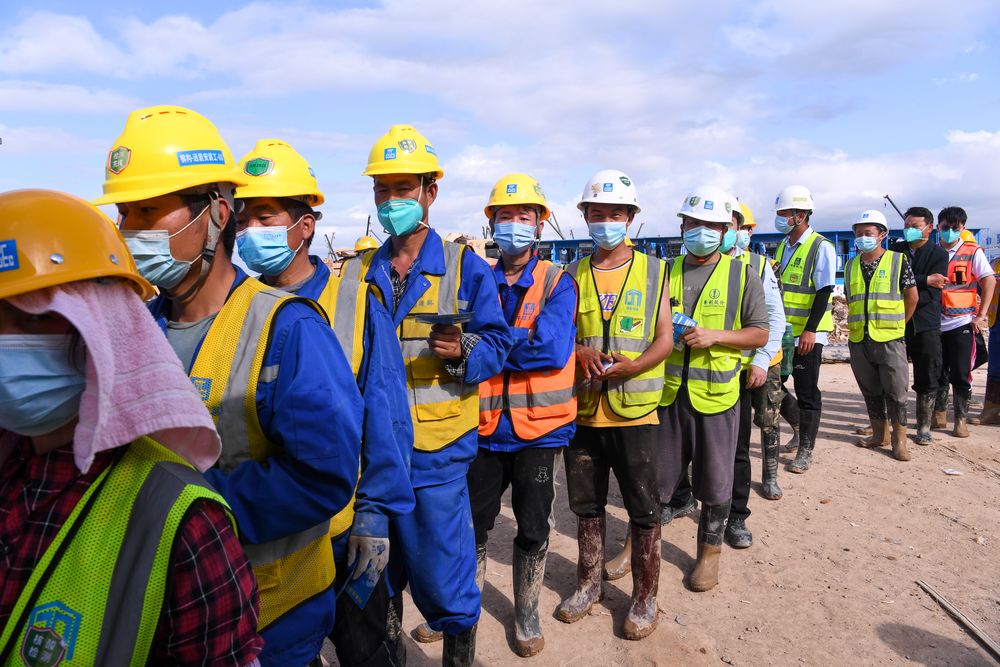 工地24小時運轉,大型機械震耳欲聾。“交通基本靠走,說話基本靠吼”,持續疲勞作戰,加上休息不好,很多人嗓子嘶啞失聲,很多人生病了吃點藥扛過去,剩下的藥留著給戰友備用。