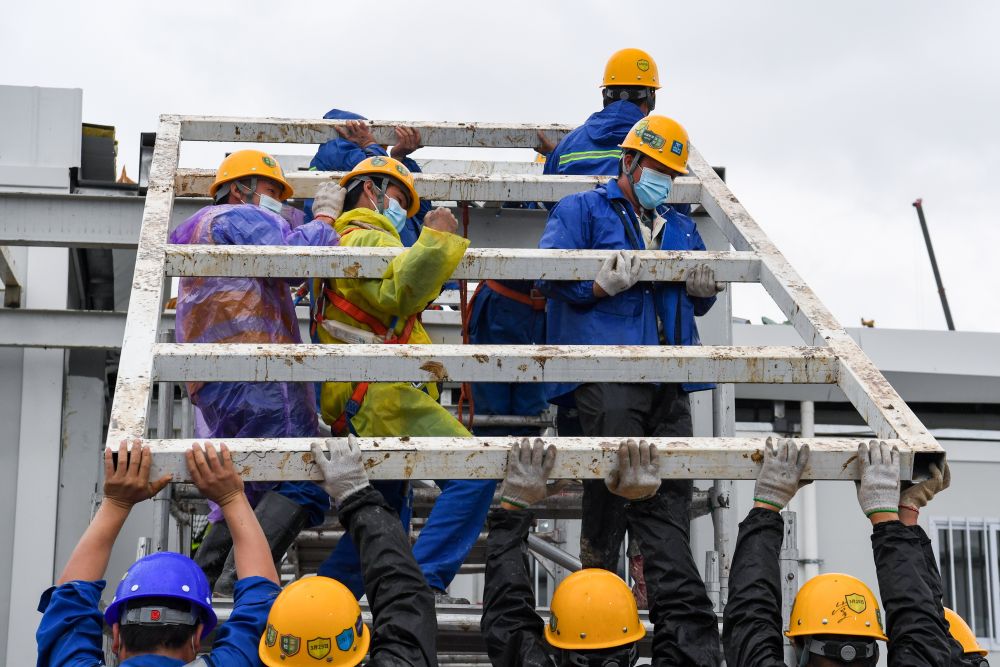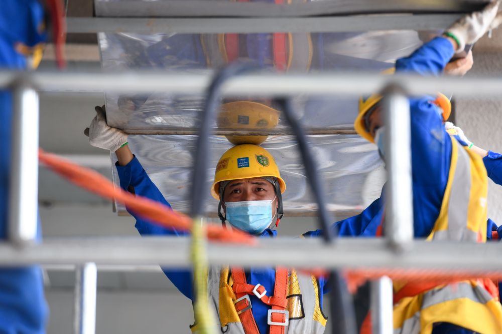 南國三四月,天氣變幻無常,烈日當空,在許多建設者臉上刻下了口罩的印記。