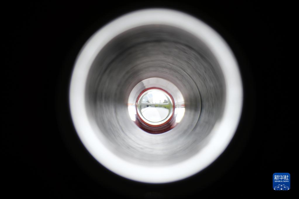 這是透過香港故宮文化博物館大門門釘看到的門前地面(2022年5月10日攝)。 新華社記者 王申 攝