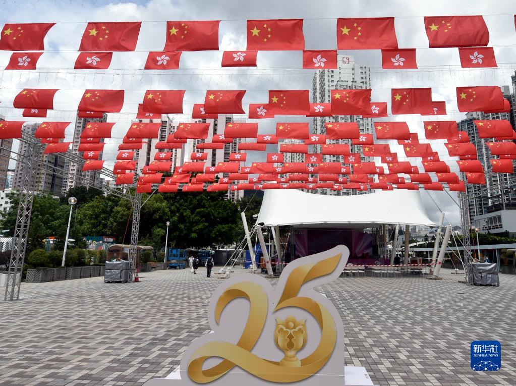 大街小巷國(guó)旗、區(qū)旗飄揚(yáng),中環(huán)碼頭行人天橋掛滿大紅燈籠,維港海面漁船浩蕩巡游,新界居民架起傳統(tǒng)大型花牌,“我和我的祖國(guó),一刻也不能分割”的歌聲在維園蕩漾……回歸祖國(guó)25周年紀(jì)念日來(lái)臨之際,香港到處洋溢著喜慶氛圍。