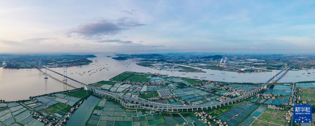 這是南沙大橋全景(2022年6月29日攝,無人機全景照片)。新華社記者 劉大偉 攝