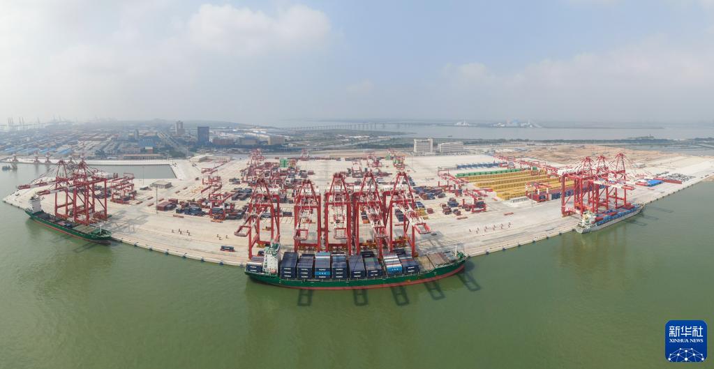 這是廣州港南沙港區四期全自動化碼頭(2022年7月28日攝,無人機全景照片)。新華社記者 鄧華 攝