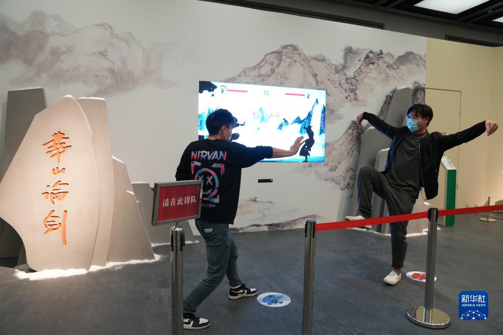 10月28日,觀眾在展覽現場體驗互動裝置“華山論劍”。新華社記者 劉穎 攝