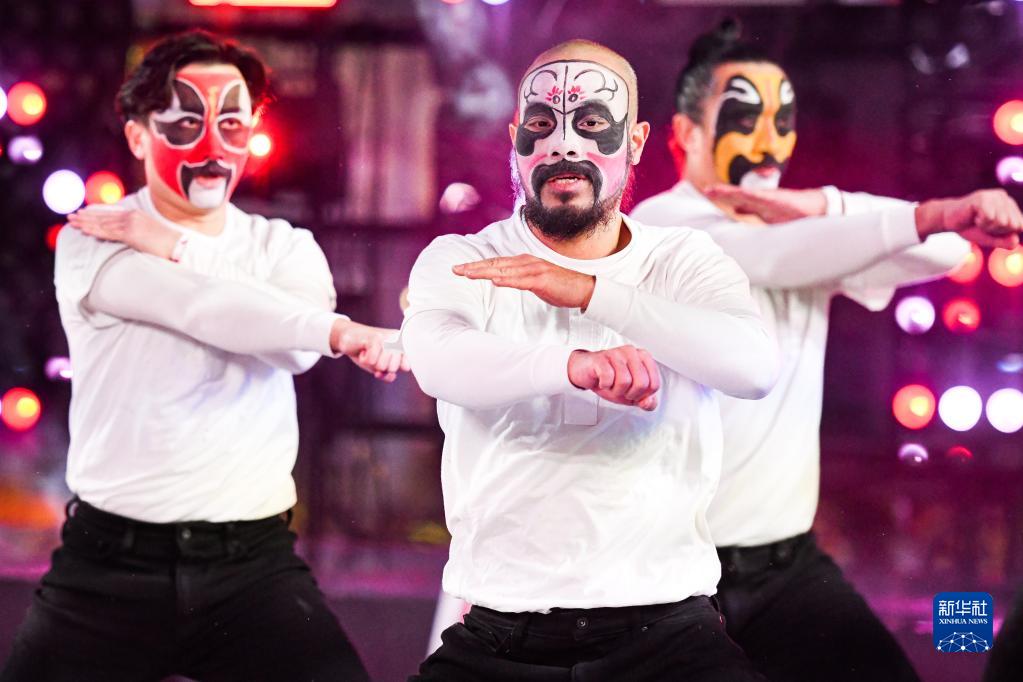 2022年12月31日,在美國紐約時報廣場,來自中國香港的藝術家在跨年倒計時活動上表演。新華社發(朱子于攝)