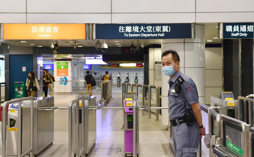 2月3日,一名工作人員在港鐵東鐵線羅湖站內(nèi)值勤。香港與內(nèi)地2月6日起全面通關(guān)。目前,港鐵東鐵線羅湖站已準(zhǔn)備就緒重新投入服務(wù)。新華社記者 陳鐸 攝