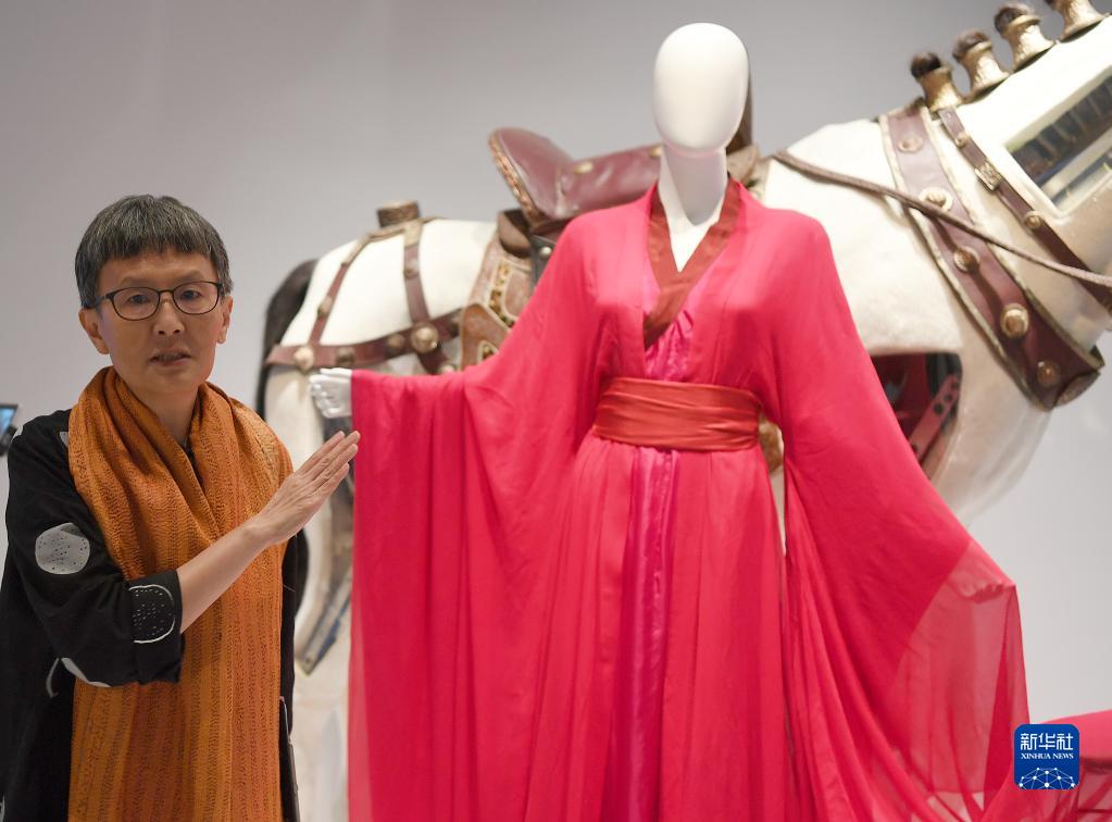5月9日,香港資深服裝造型設計師張西美在香港文化博物館專題展覽館講解電影服裝。新華社記者 陳鐸 攝
