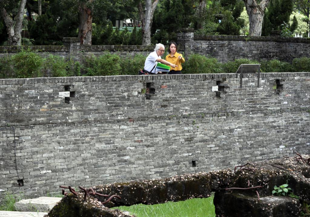 說話間,已到第一個重要點位——九龍寨城公園。這座江南風格的園林內,亭臺樓閣與綠樹流水間,還留存著九龍城寨作為晚清軍事駐地的斷壁殘垣。