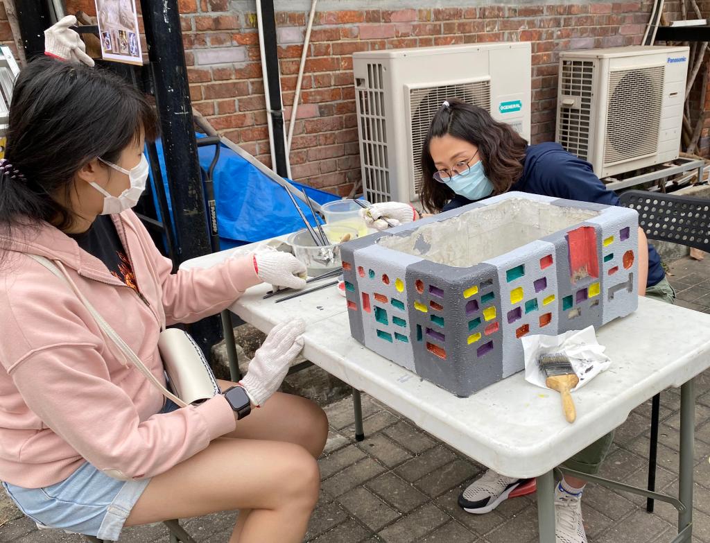 九龍城區的社區街坊和游客積極參加制作水泥花盆等活動(2020年11月攝)。新華社發