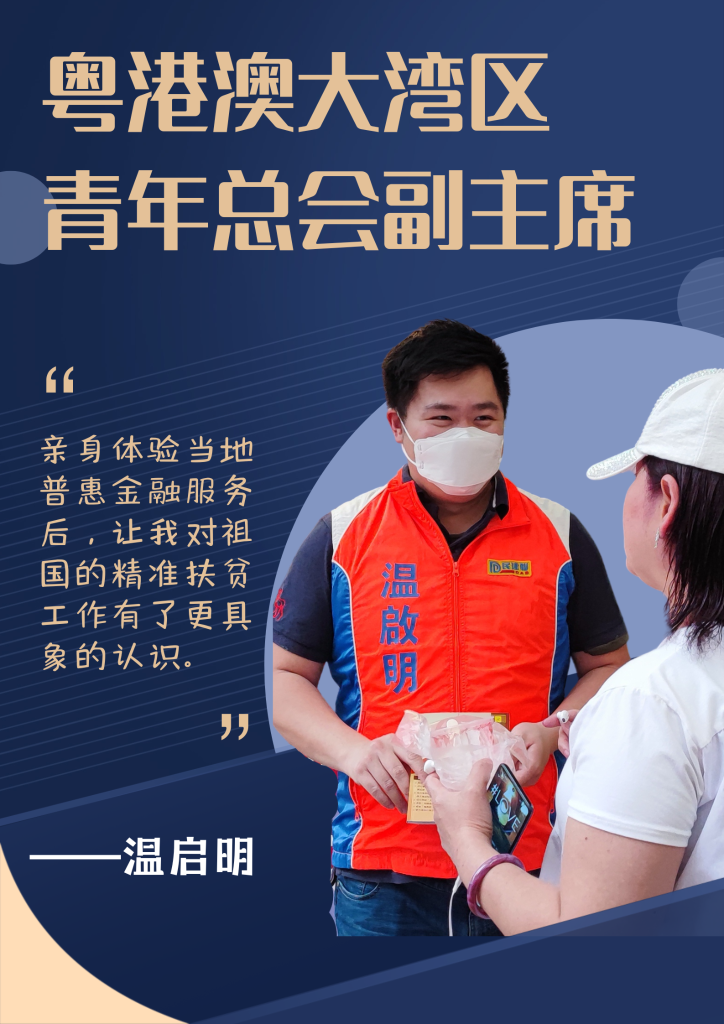 在江西臘樹村,干凈整潔的鄉村環境、色彩斑斕的墻體彩繪和古樸的文化元素,讓粵港澳大灣區青年總會副主席溫啟明眼前一亮。“親身體驗當地普惠金融服務后,讓我對祖國的精準扶貧工作有了更具象的認識。”他說。