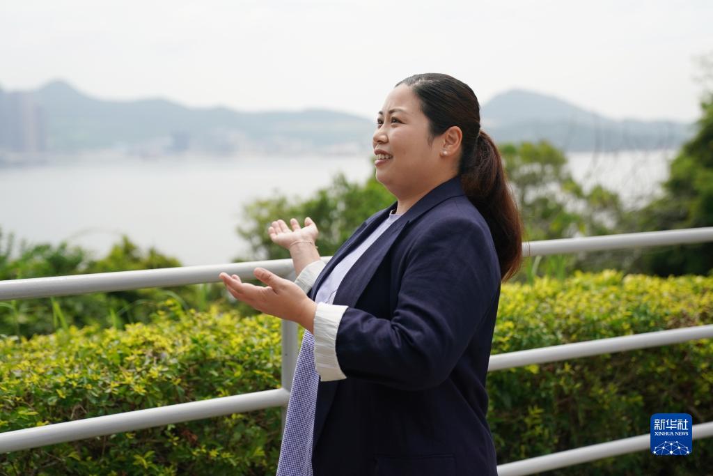 香港海防博物館一級(jí)助理館長(zhǎng)梁明穎向新華社記者介紹香港海防博物館獨(dú)特的地理位置(8月10日攝)。 新華社記者 王申 攝