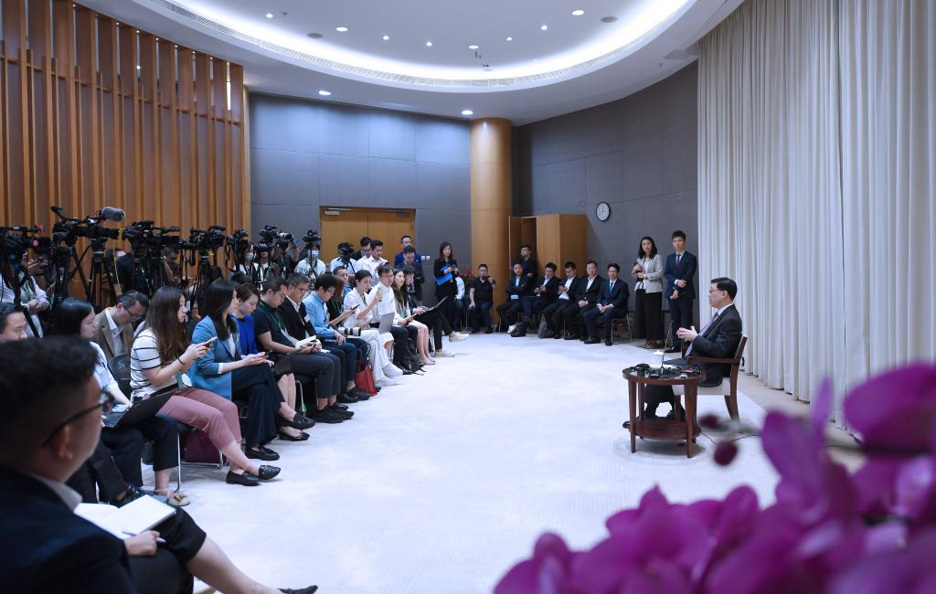 6月14日,香港特区行政长官李家超接受媒体团采访。新华社记者 陈铎 摄