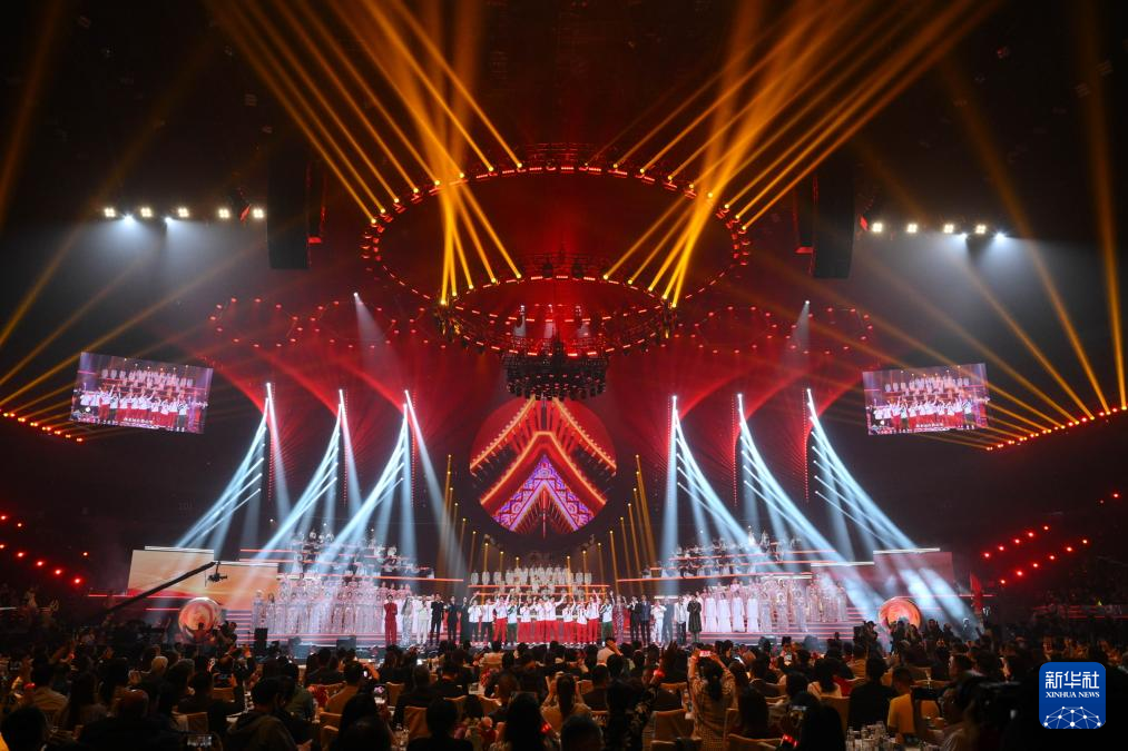22日晚,“湾区升明月”2024大湾区电影音乐晚会在澳门银河综艺馆唱响。海峡两岸暨港澳地区电影人、音乐人和奥运健儿代表,携手国际知名音乐人,用光影与歌声共绘粤港澳大湾区的金秋盛景。