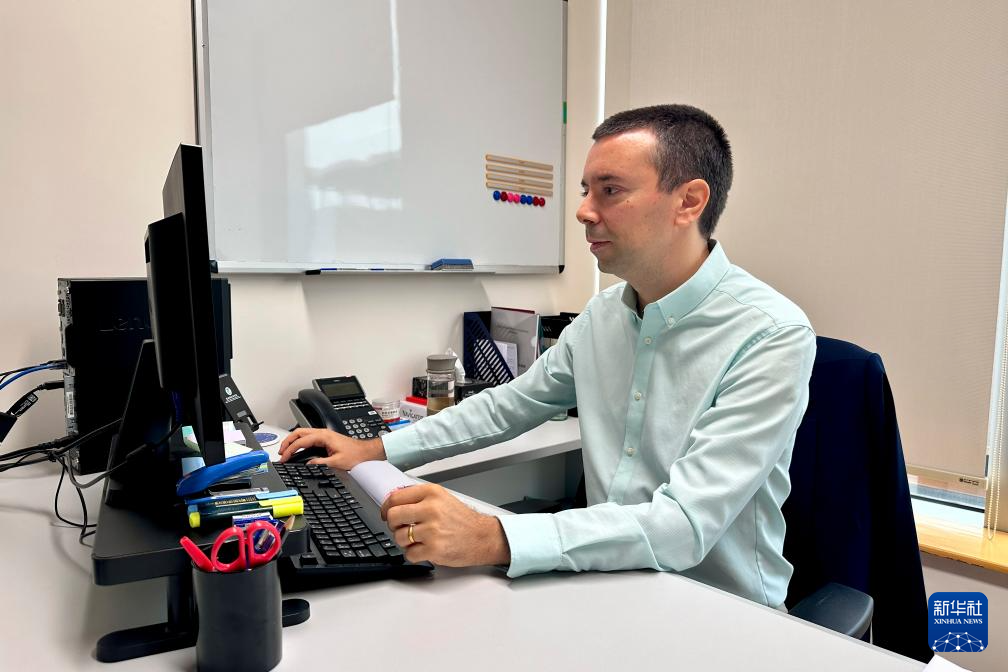 2024年11月21日,澳门城市大学葡语国家研究院的助理教授、来自葡萄牙的若昂·西蒙斯(中文名朱奥)在办工室工作。新华社记者 王露 摄