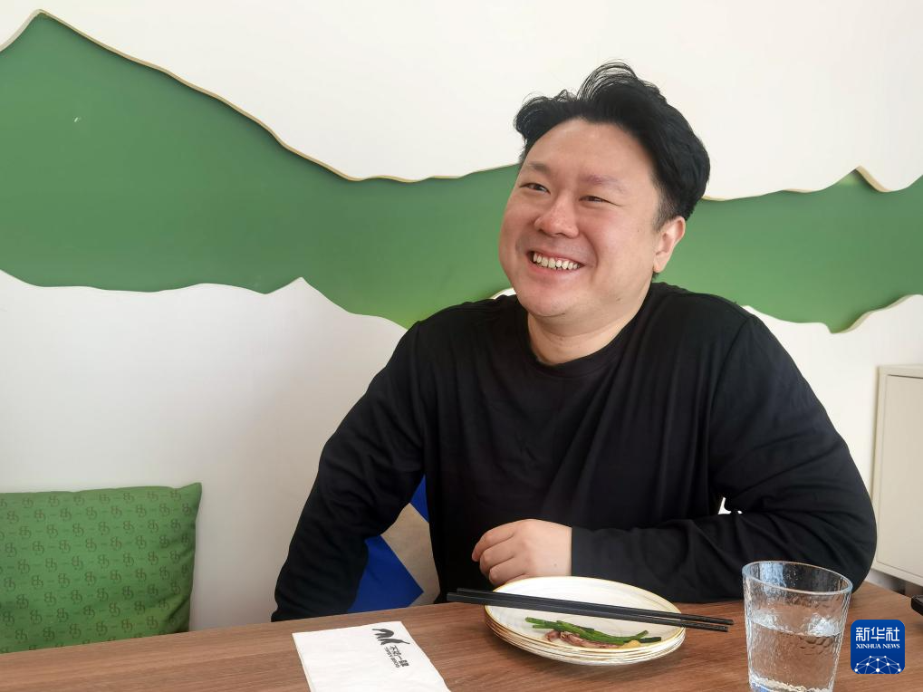澳门青年李永益在他新开的澳门特色餐馆讲述在上海创业的故事(2024年11月26日摄)。 新华社记者 许晓青 摄