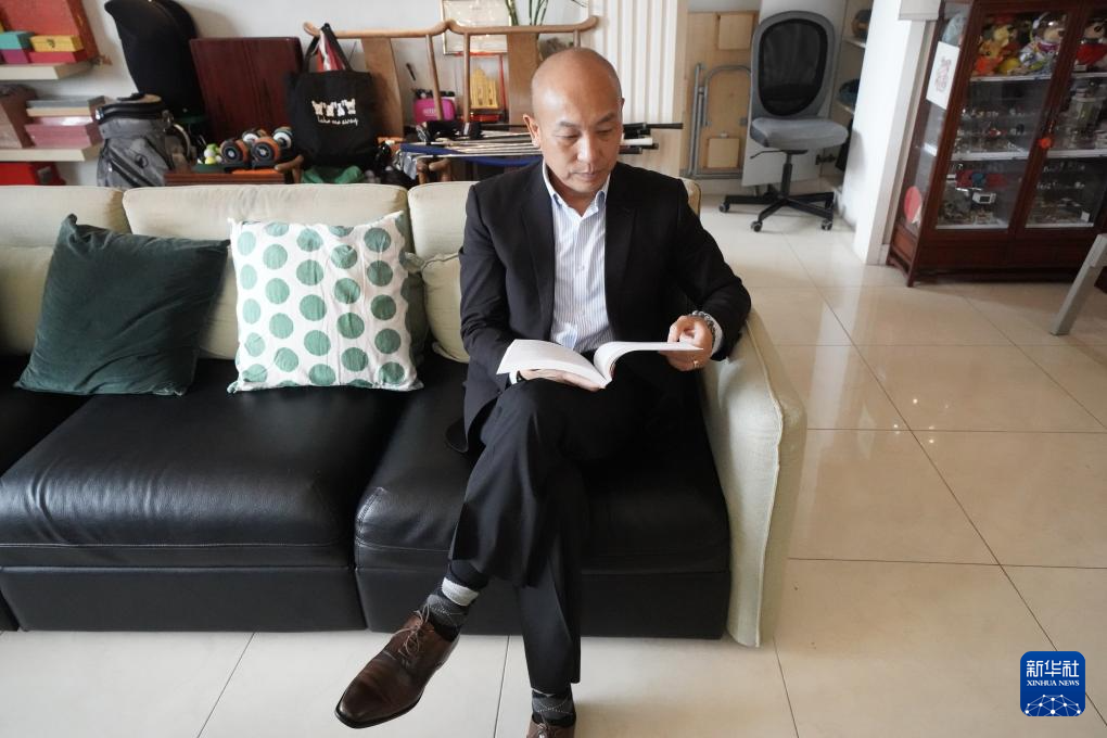 胡祖杰在家中读书(11月13日摄)。新华社记者 褚萌萌 摄