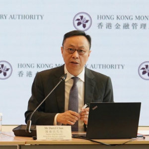4月25日,香港金融管理局副总裁陈维民在香港接受记者采访。新华社发(王申 摄)