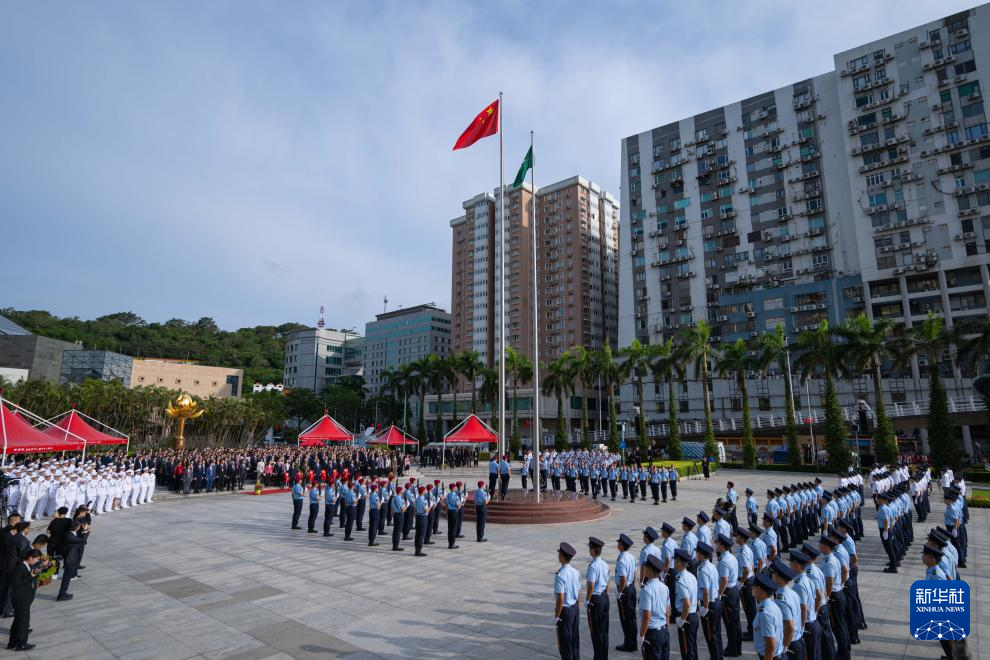 10月1日,澳门特别行政区政府在金莲花广场隆重举行升旗仪式,庆祝中华人民共和国成立76周年。新华社发(张金加摄)