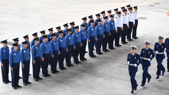 香港特區政府消防處學員在穗進行中式隊列步操訓練