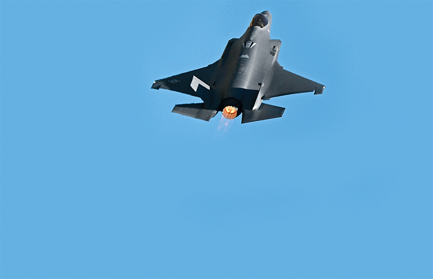 2025年2月12 日,在印度班加罗尔耶拉汉卡空军基地举行的第15届印度航展上,美国空军F-35战机做飞行展示 新华社/法新