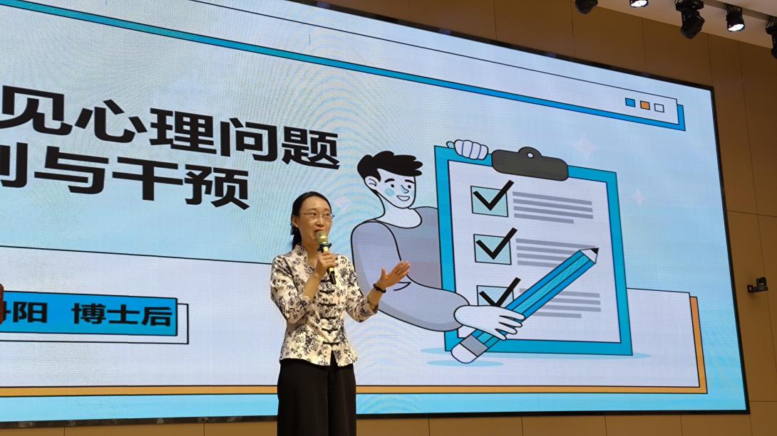 本次培训的核心环节,特邀积极心理学指导师、心理学博士罗丹阳主讲。讲座聚焦一线心理健康教师和班主任的核心关切,围绕“学生常见心理问题精准识别与有效干预”“班主任开展心理健康教育的策略与艺术”“学生日常心理疏导实务技巧”等主题,专家进行了详实的讲解与示范。