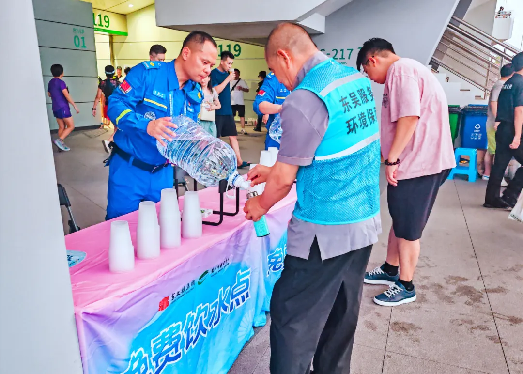 文明不仅体现于观众,也闪烁在志愿者的微笑里、细节中。为了保障观众的饮水需求,苏州赛区设置了多个饮水点,志愿者们不停穿梭于人群中,微笑着为观众递上一杯杯清凉的饮用水,还不忘贴心地提醒:“小心打翻,请慢慢饮用”“这边可以续水,我来帮您”。