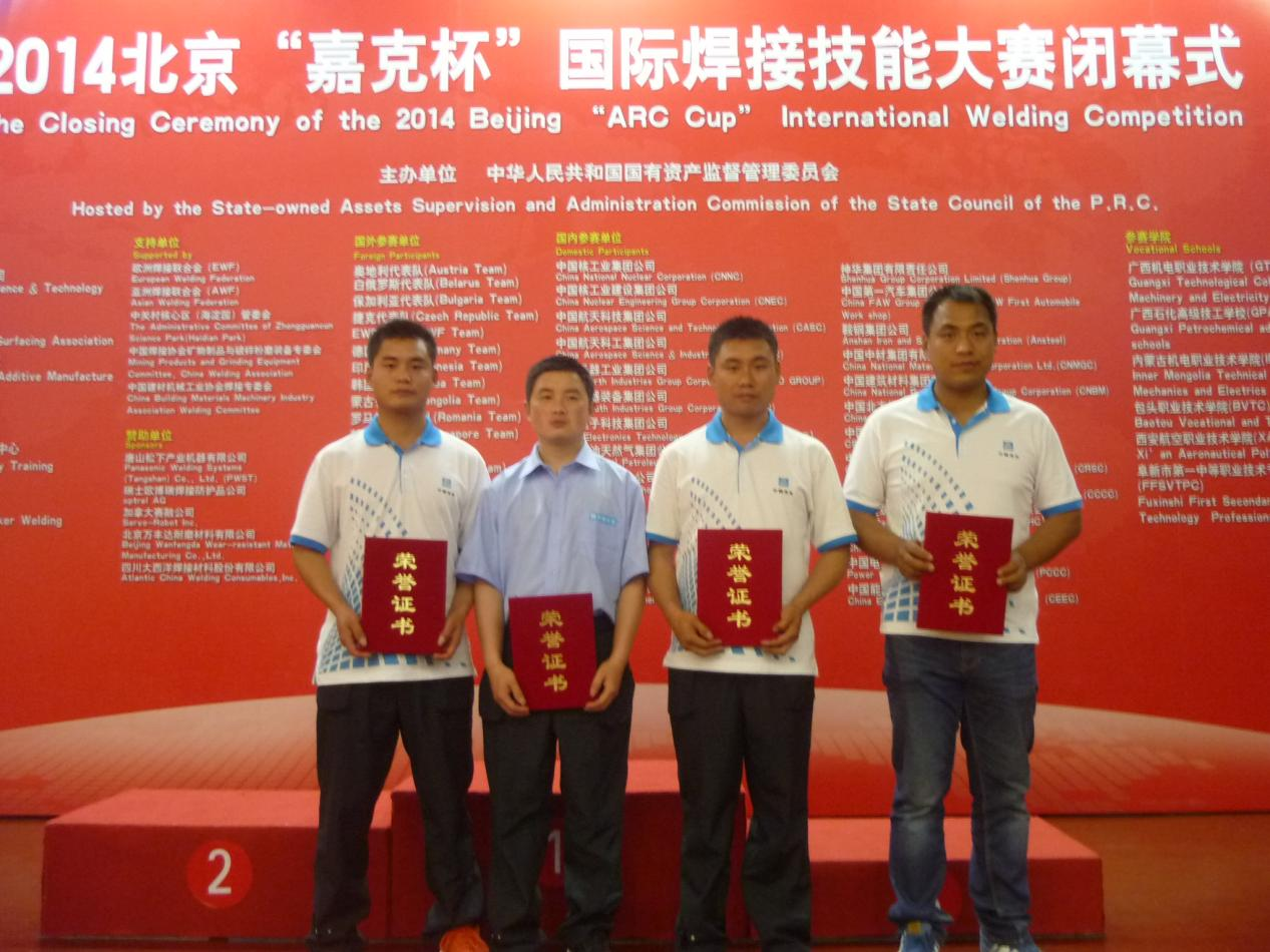 邱明辉(右二)在“嘉克杯”国际焊接技能大赛中,