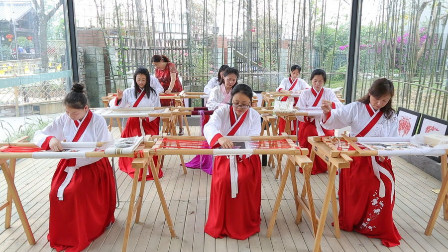 成都青羊区清源社区蜀绣非遗公开课。成都市文明办供图