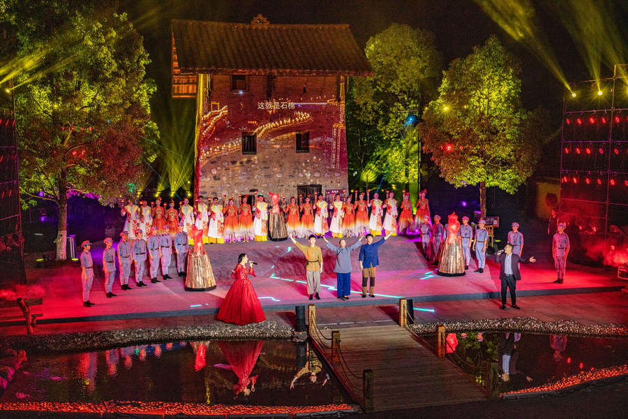 雅安还推出红色沉浸式实景剧《安顺记忆》。在安顺场镇街边,当年刘伯承元帅亲自指挥“强渡大渡河战役”的指挥楼前,实景剧演出道具就摆放在两边。