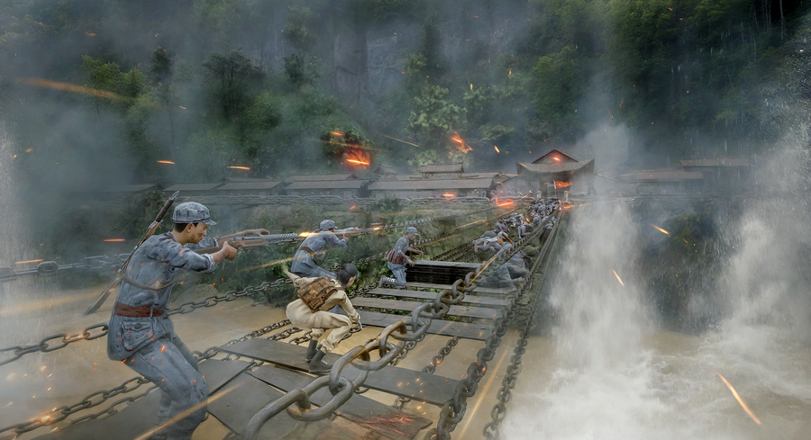 “跟着走·长征”VR沉浸式体验剧画面。强渡大渡河纪念馆供图