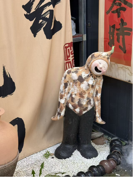 太原市非物质文化遗产黑釉陶器制作技艺传承人王志平的院子里的摆件。这里是游客喜爱的“网红”打卡地之一。新华网 王梦佳摄