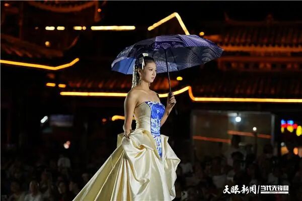 灯光摇曳,T台上民族元素与现代设计交织。国庆当晚,黔东南州凯里市苗侗风情园内,首届贵州“村T”民族时装周文创设计大赛成果展正在进行,蓝染布包、民族风抱枕、刺绣皮具、银饰挂件等文创产品纷纷亮相,通过T台与直播镜头,将民族时尚的魅力传递给现场与线上的观众。