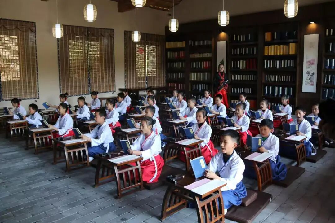 学子们在雅溪书院集体诵读经典家训。图片来源:江西文明网