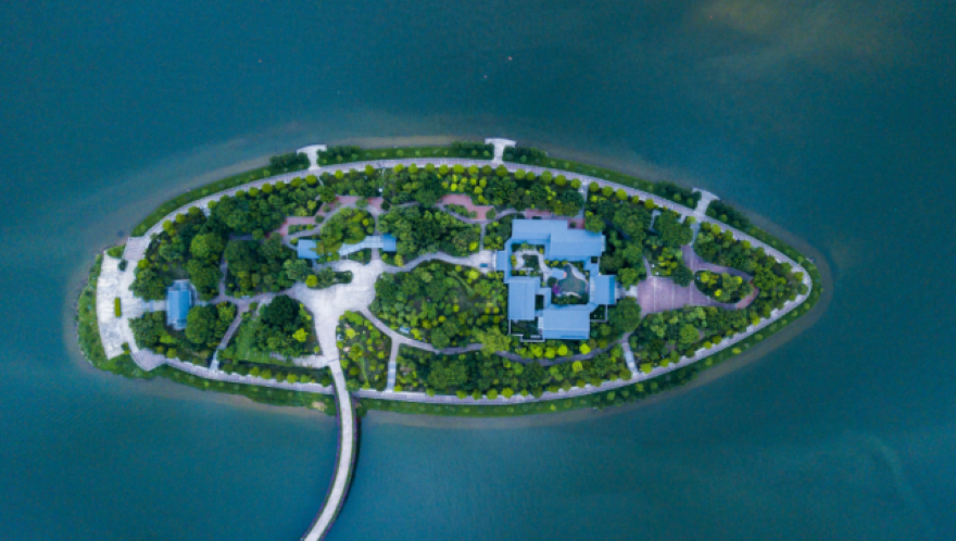 岭南书院·江心岛书院坐落于清远市区北江中心岛屿。资料图