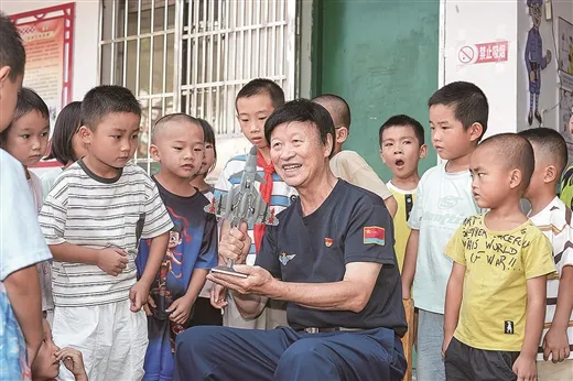 王志明给孩子们讲解国防知识。