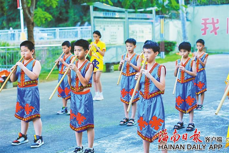 五指山市第二小学学生演奏黎族竹木乐器。五指山市文化馆供图